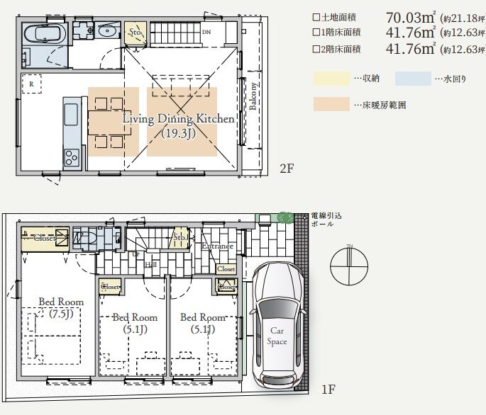 土地面積 70.03㎡(約21.18㎡)